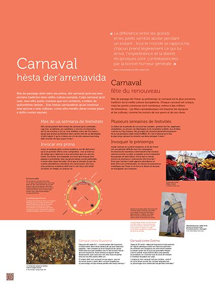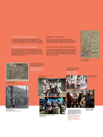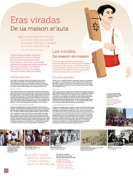 Les fêtes de carnaval connaissent un renouveau en Bigorre ces dernières décennies grâce à l’action de structures associatives et de municipalités. L’exposition bilingue "Carnaval, Entà que venga eth printemps ! / Pour que vienne le printemps !" s’inscrit dans cette dynamique. Elle est le fruit d’une collaboration entre l’association Ligams à Ibos, l’anthropologue Thierry Truffaut et la Direction des Archives et des patrimoines du Département des Hautes-Pyrénées (Culture occitane et territoires, Archives départementales).