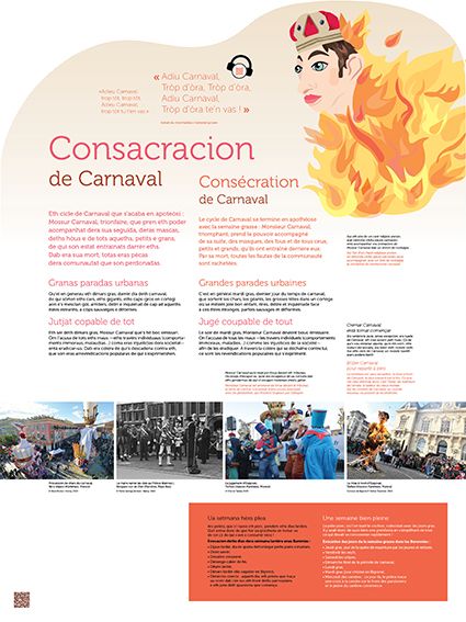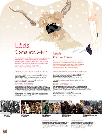 Au fil des panneaux, elle propose une exploration symbolique des carnavals traditionnels à travers une présentation de ces pratiques très anciennes et répandues dans un vaste espace européen pour mieux ancrer les nouveaux rituels carnavalesques en Bigorre. Les illustrations réalisées par Chantal Daquo pour cette exposition ainsi que les nombreuses photos de carnavals viennent mettre en évidence la puissance de ces festivités traditionnelles qui savent si bien se réinventer.