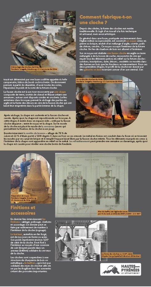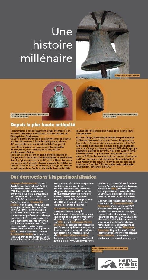 Les cloches, au sein des communautés villageoises et urbaines, étaient aussi riches de sens : objet liturgique, marqueur social, vecteur de la protection divine et instrument de musique. Au fil des siècles, les techniques se sont perfectionnées tout en restant artisanales, elles sont encore maîtrisées par quelques rares campanistes qui œuvrent sur le territoire. La silhouette des clochers a, elle aussi, évolué depuis le modeste clocher-mur médiéval jusqu'à l'imposante tour-clocher du XIXe siècle.