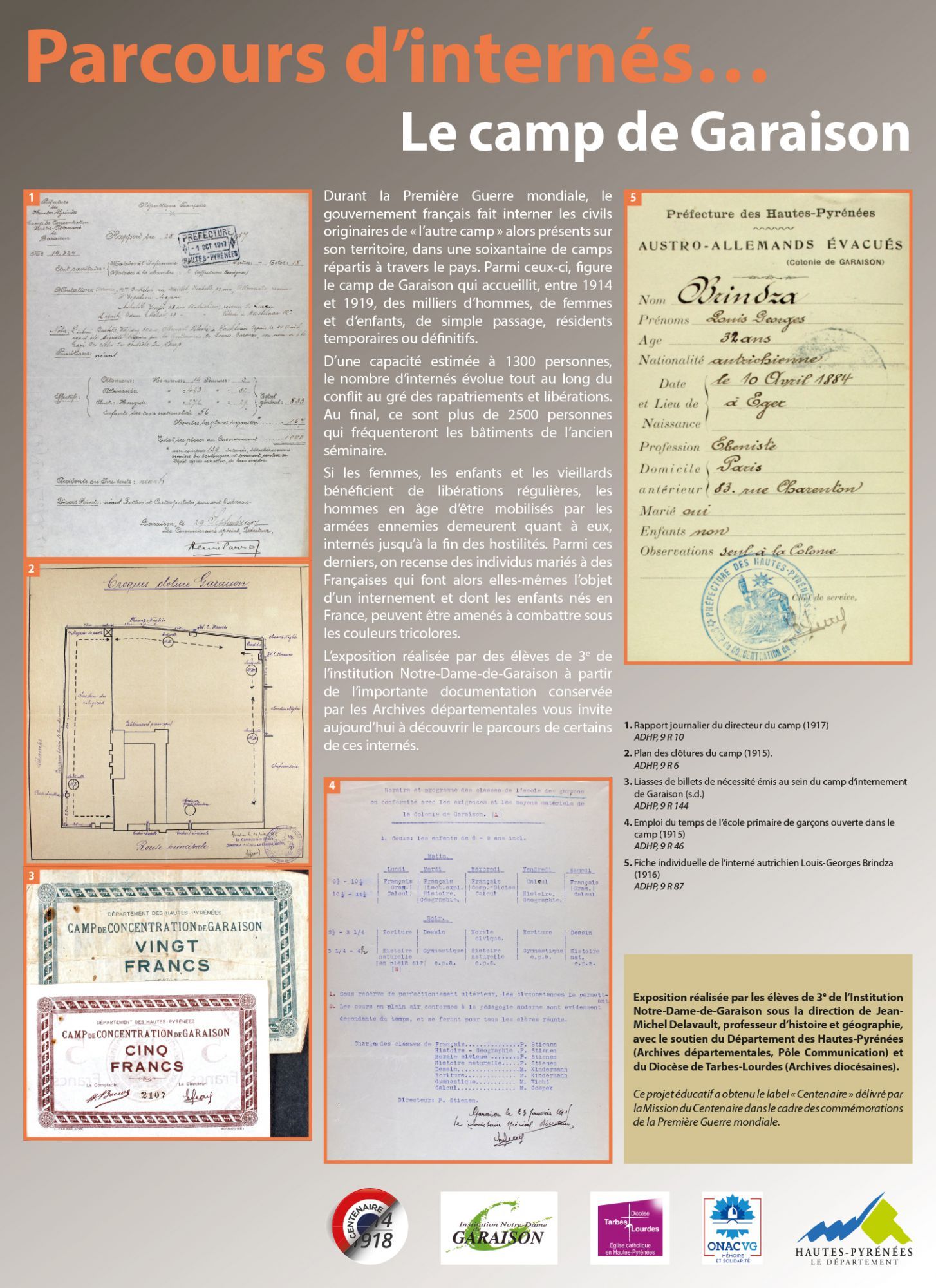 Durant les commémorations du centenaire de la Première Guerre mondiale, le Service éducatif des Archives départementales des Hautes-Pyrénées a accompagné, à l'initiative du professeur d'histoire-géographie, Jean-Michel Delavault, des élèves de 3e de l’institution Notre-Dame-de-Garaison .
