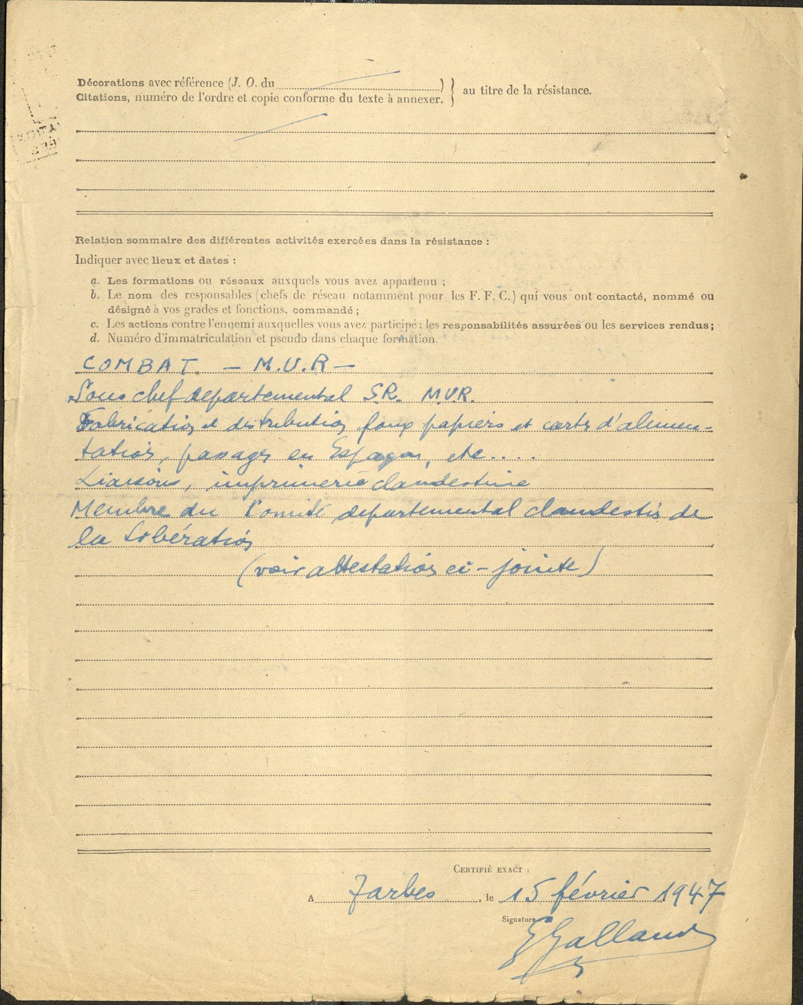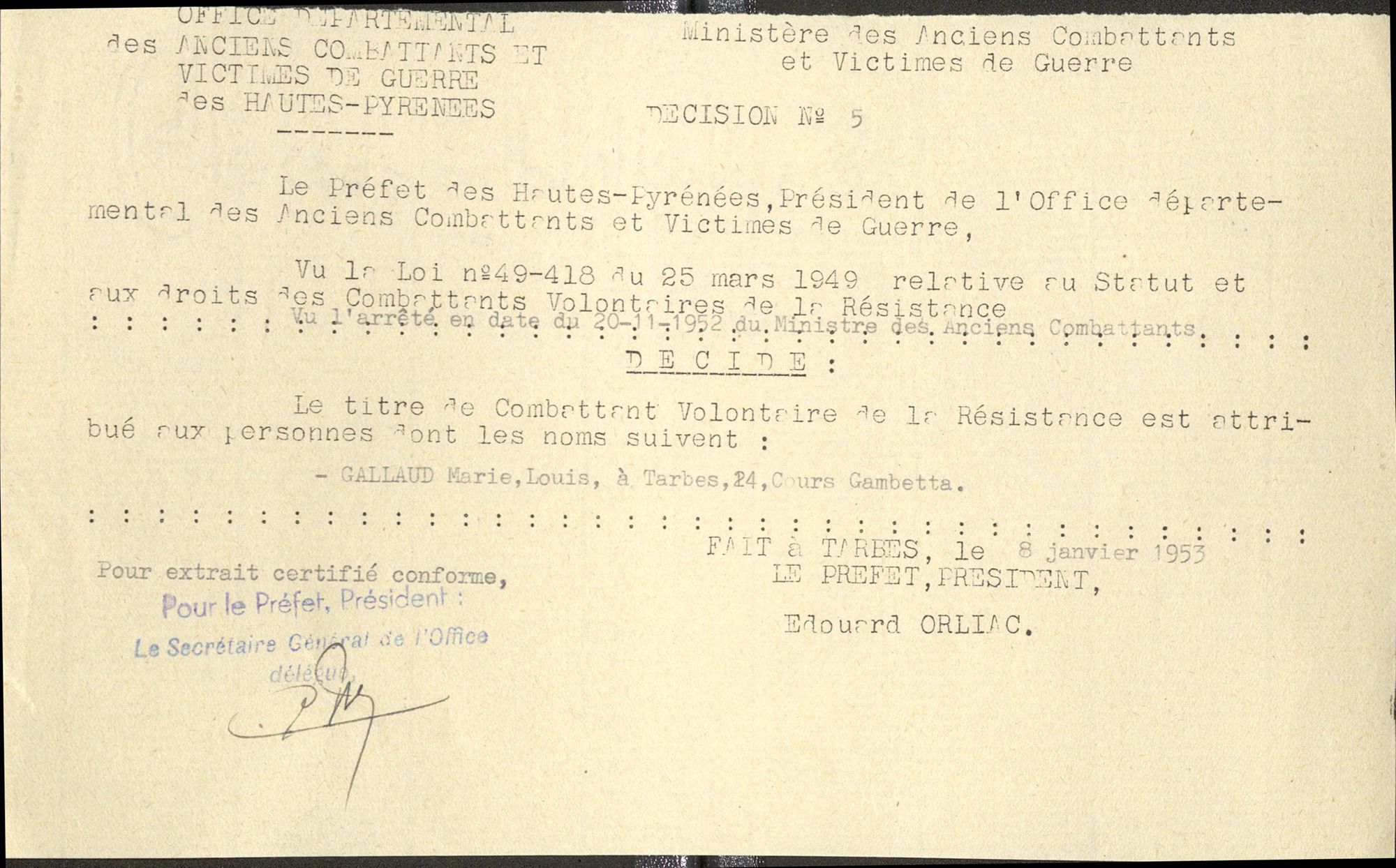 Comme d’ancien résistants, Louis Gallaud fait valoir ses droits auprès de l’Office national des anciens combattants.