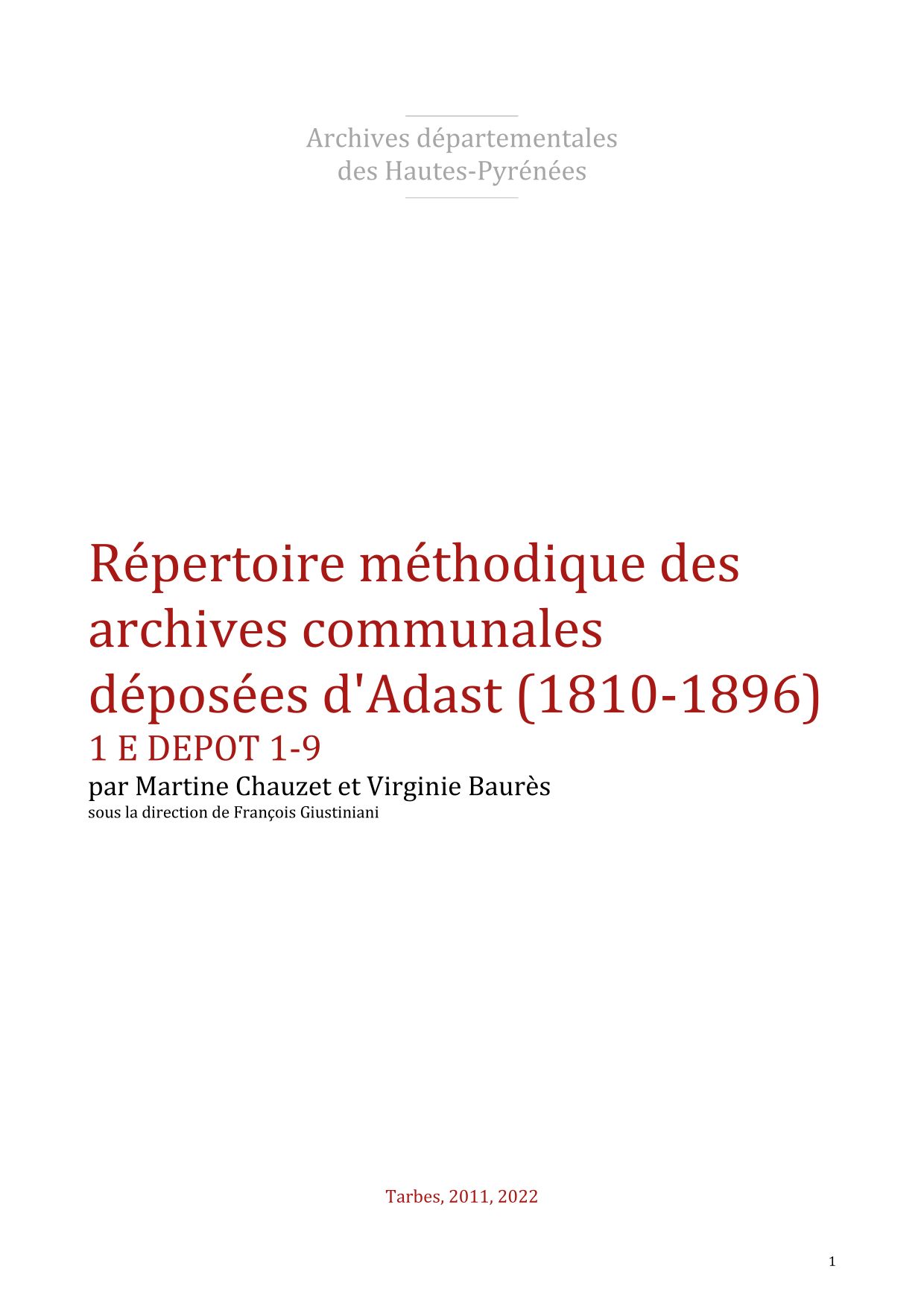 De Adasto, latin (1342, Pouillé Tarbes ; 1379, Procuration Tarbes).