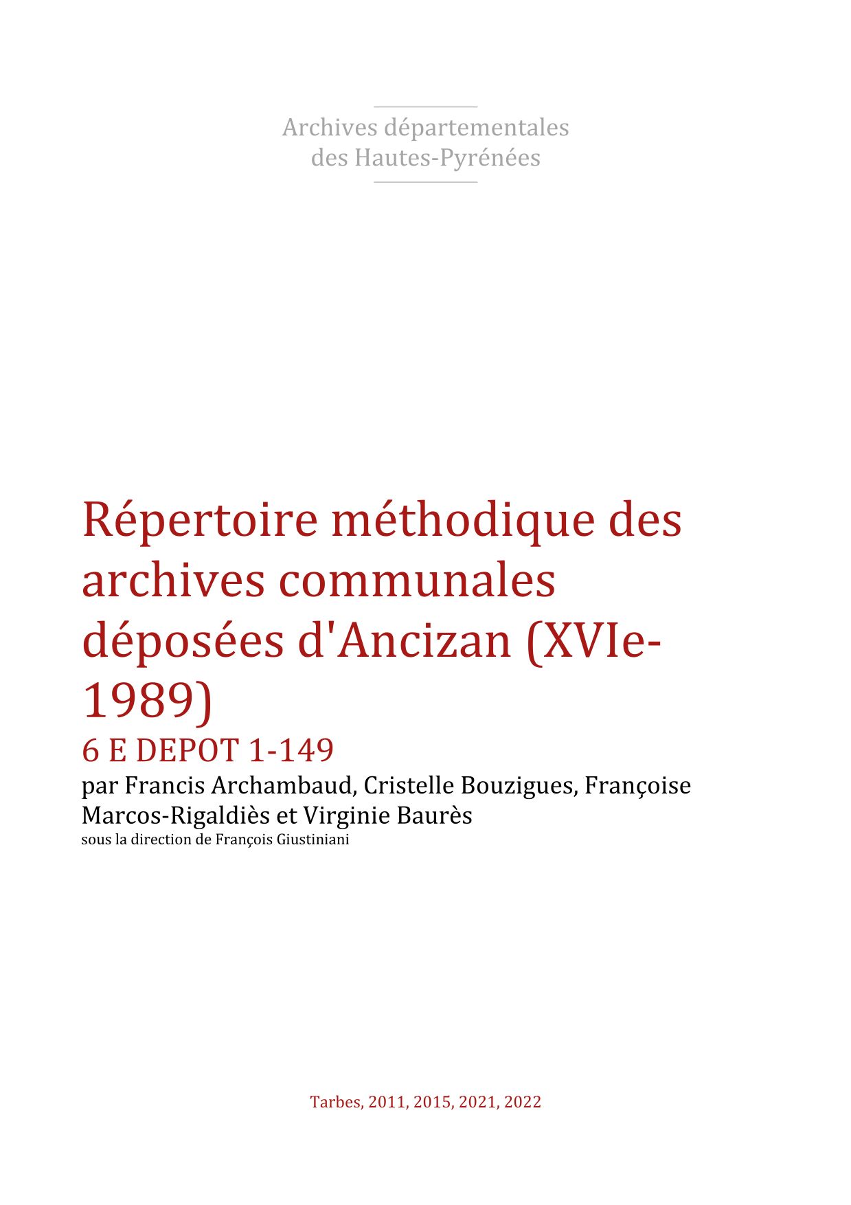Pe de Anciza, P. de Ancisa (v. 1125, Cartulaires Bigorre).