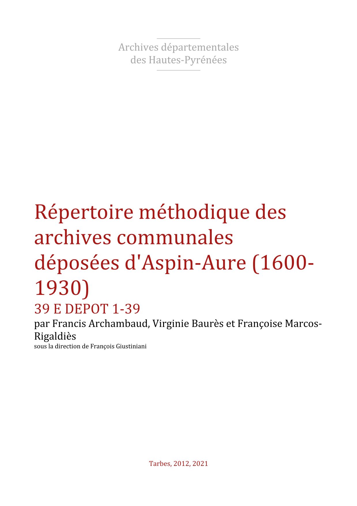 Historique administratif : Sénéchaussée d'Auch. Pays des Quatre-Vallées. Vallée d'Aure. Canton de Sarrancolin (1790), puis d'Arreau (1801-2014). Prend le nom d'Aspin-Aure en 1957. Arrondissement de Bagnères-de-Bigorre. Canton de Neste, Aure et Louron. |