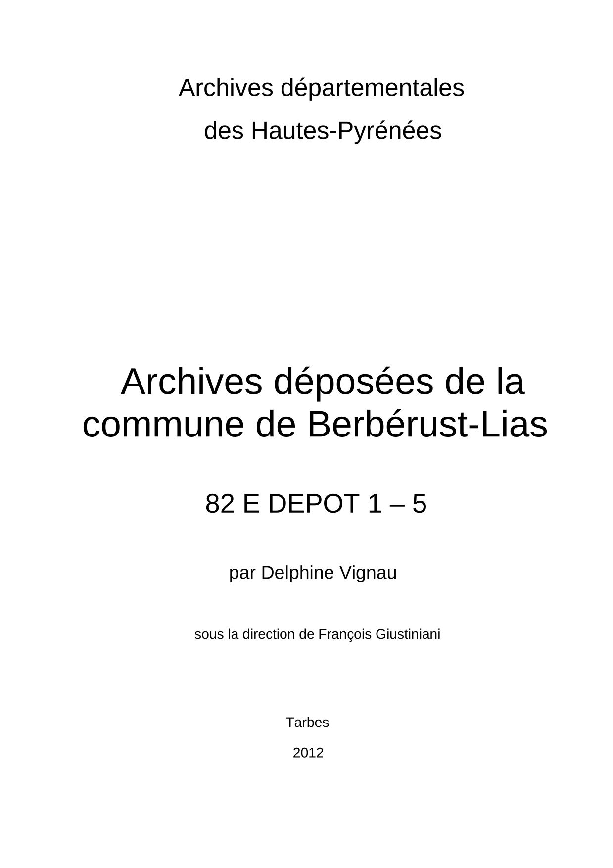 Historique administratif : Communautés distinctes dépendant des pays et sénéchaussée de Bigorre, du Lavedan, de l'Arribèra de Davantaygue. Canton de Juncalas, devenu de Castelloubon et Batsouriguère (1790), dit à nouveau de Juncalas (1801); canton de Lourdes (1802), de Lourdes-Est depuis 1973. Berbérust et Lias sont réunies en 1846. |