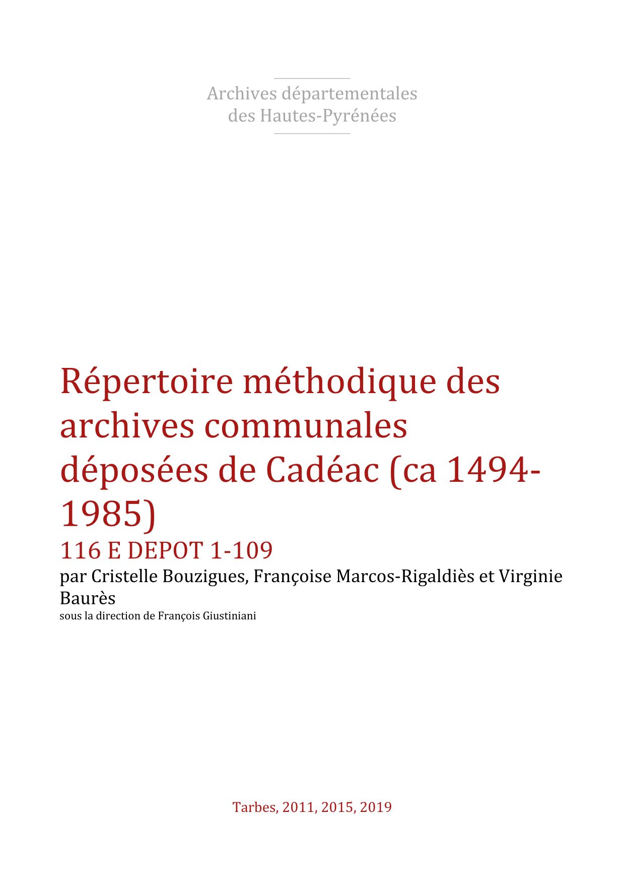 Cadiaco, latin (XIIe s., Cartulaires Bigorre).