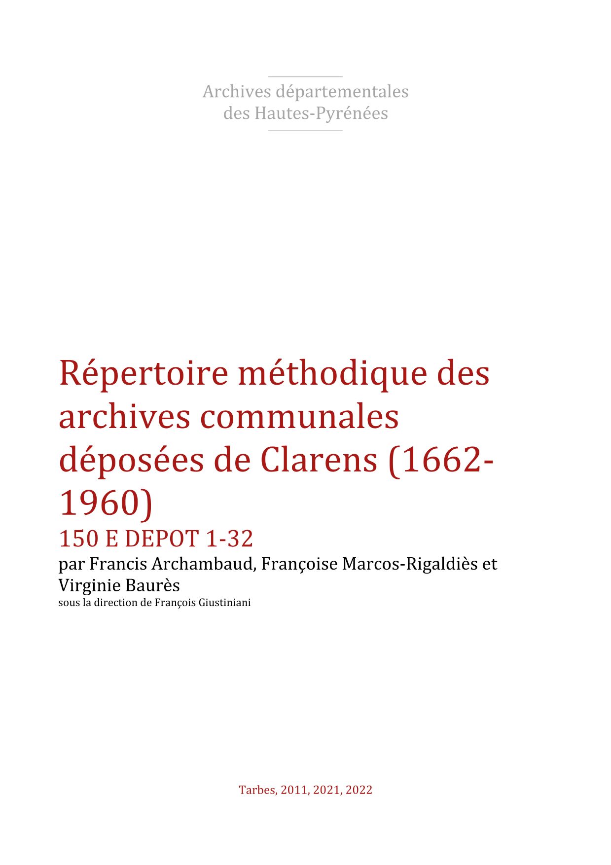 De Clarens (1342, Pouillé Tarbes).