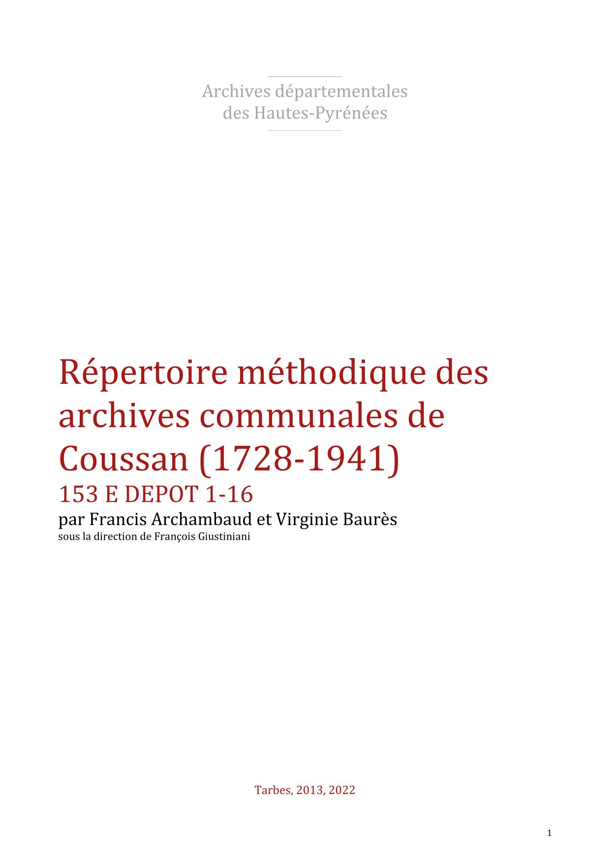 Le rapport avec Coussan (H.-P.) n'est pas assuré.