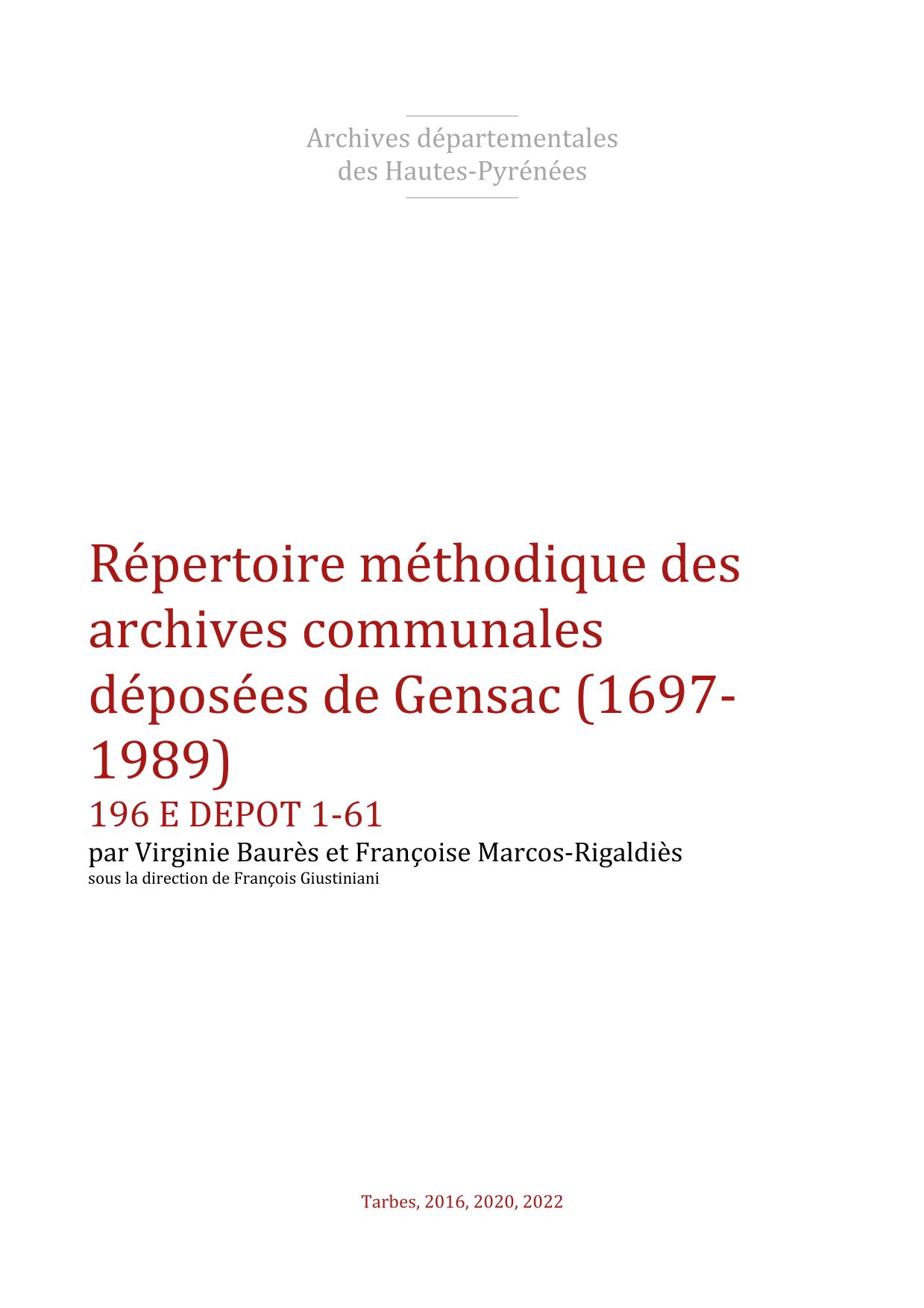 De Gensaco, latin (1342, Pouillé Tarbes ; 1379, Procuration Tarbes).