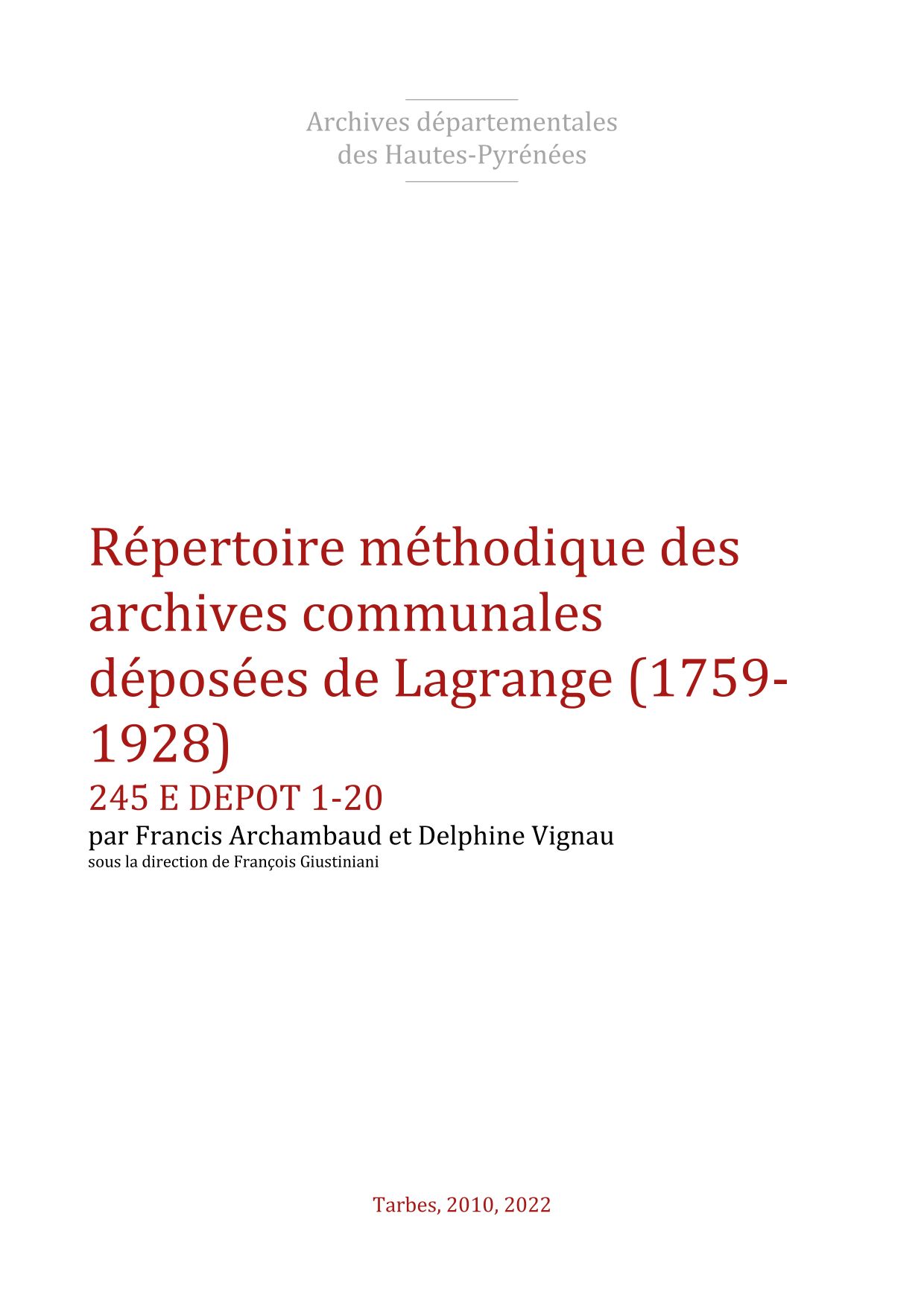Lagrange (1685, Registres paroissiaux)