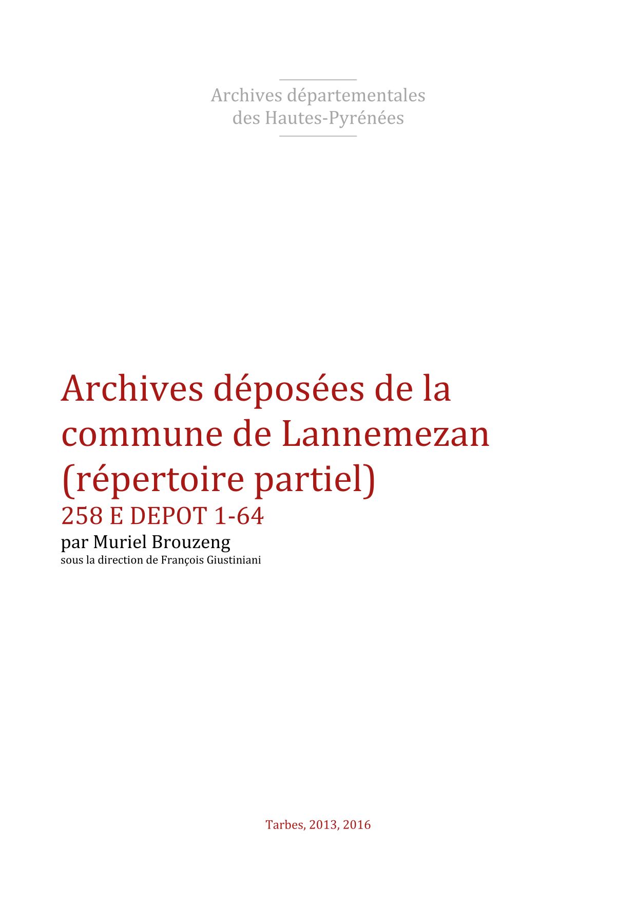 Lannemezan (fin 18°s. Carte de Cassini).