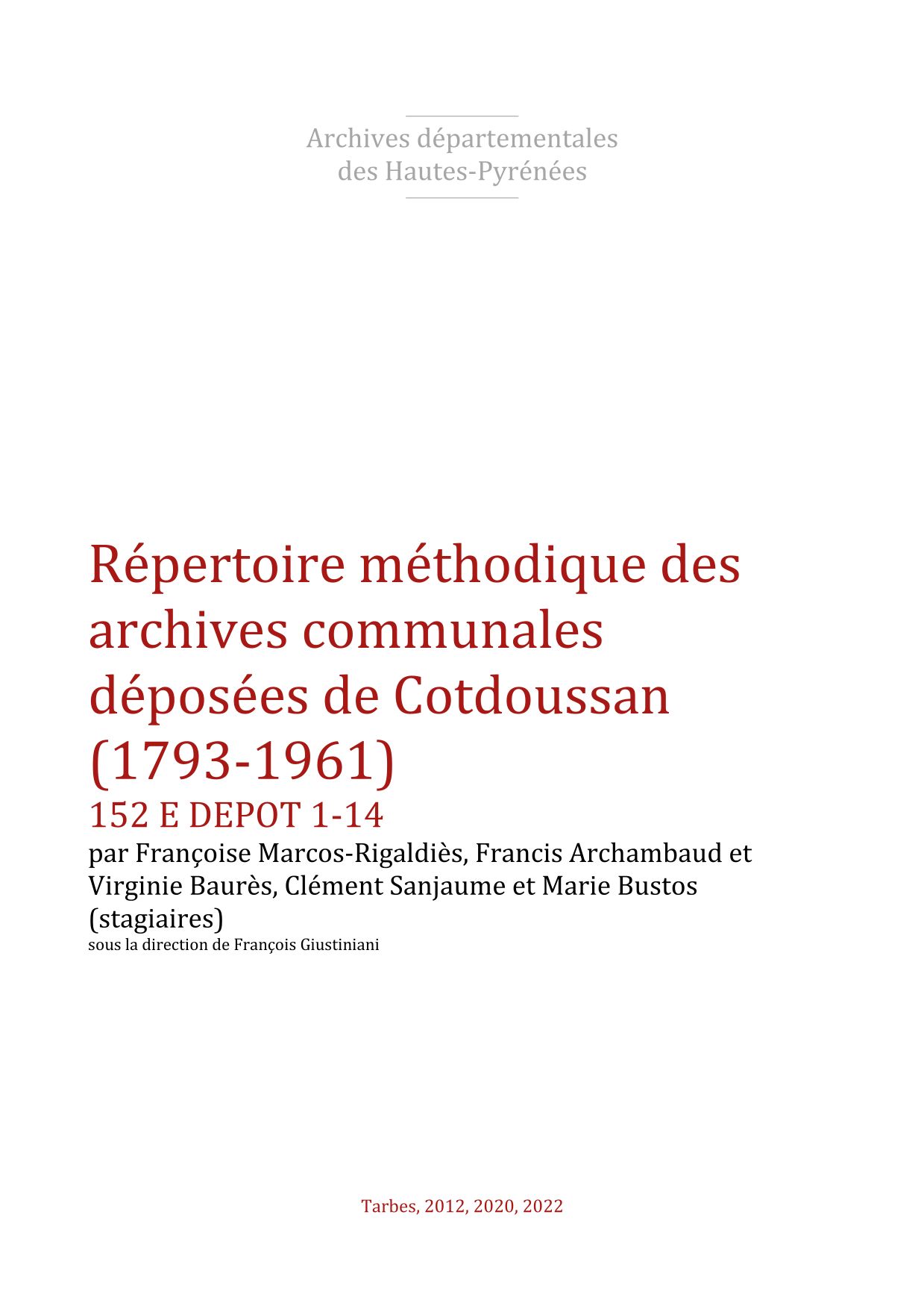 Cotdoussan (1790, Département 1 et 2).