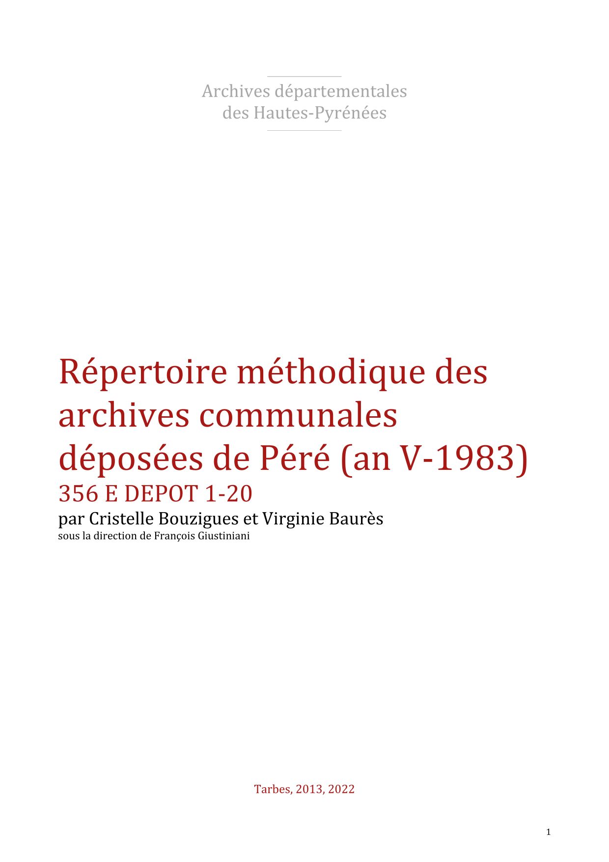 Péré dès 1759 (Registres paroissiaux). Péré et Bordesbieilles apparaissent fréquemment comme noms de personnes (ibid.). Dans un acte de 1673 (réf.?) citant tous les habitants du lieu de Bordes Vieilhes alias Péré, ceux-ci portent tous, sans exception, le patronyme de Péré.