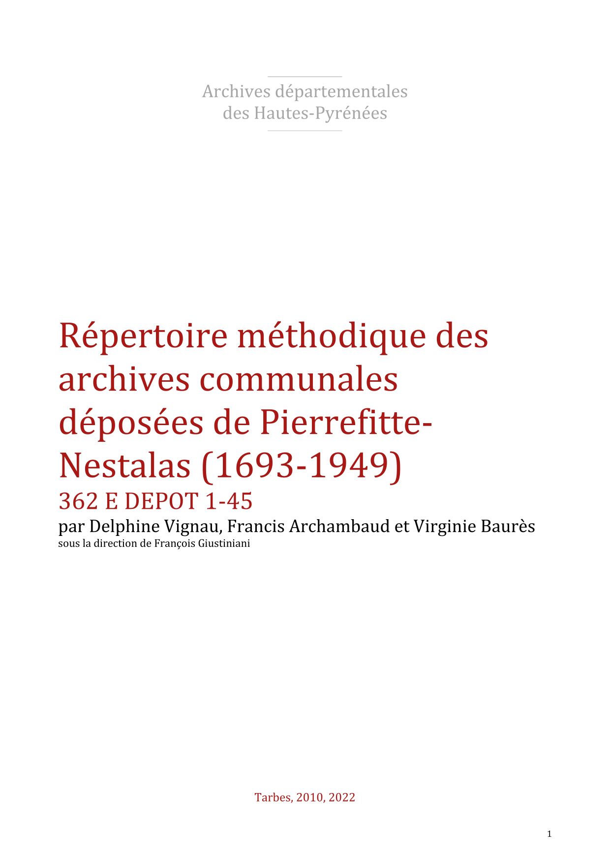 Historique administratif : Communauté de Nestalas dont Pierrefitte n'est qu'un lieu dit. Pays et sénéchaussée de Bigorre. Lavedan. Arribèra de Saint-Savin. Nestalas est du canton de Saint-Savin (1790), d'Argelès depuis 1801. Prend le nom de Pierrefitte-Nestalas en 1901. |