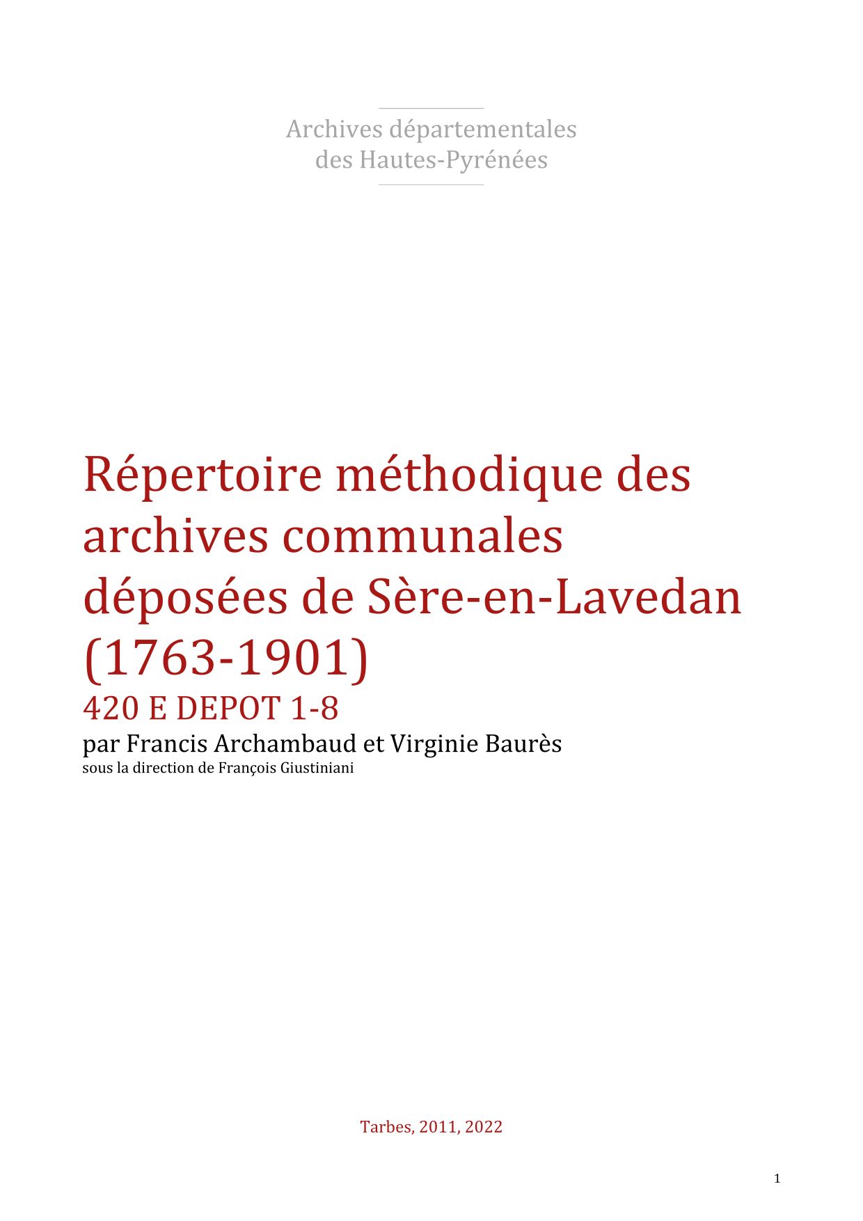 Sère en Lavedan (1760, Registres paroissiaux).