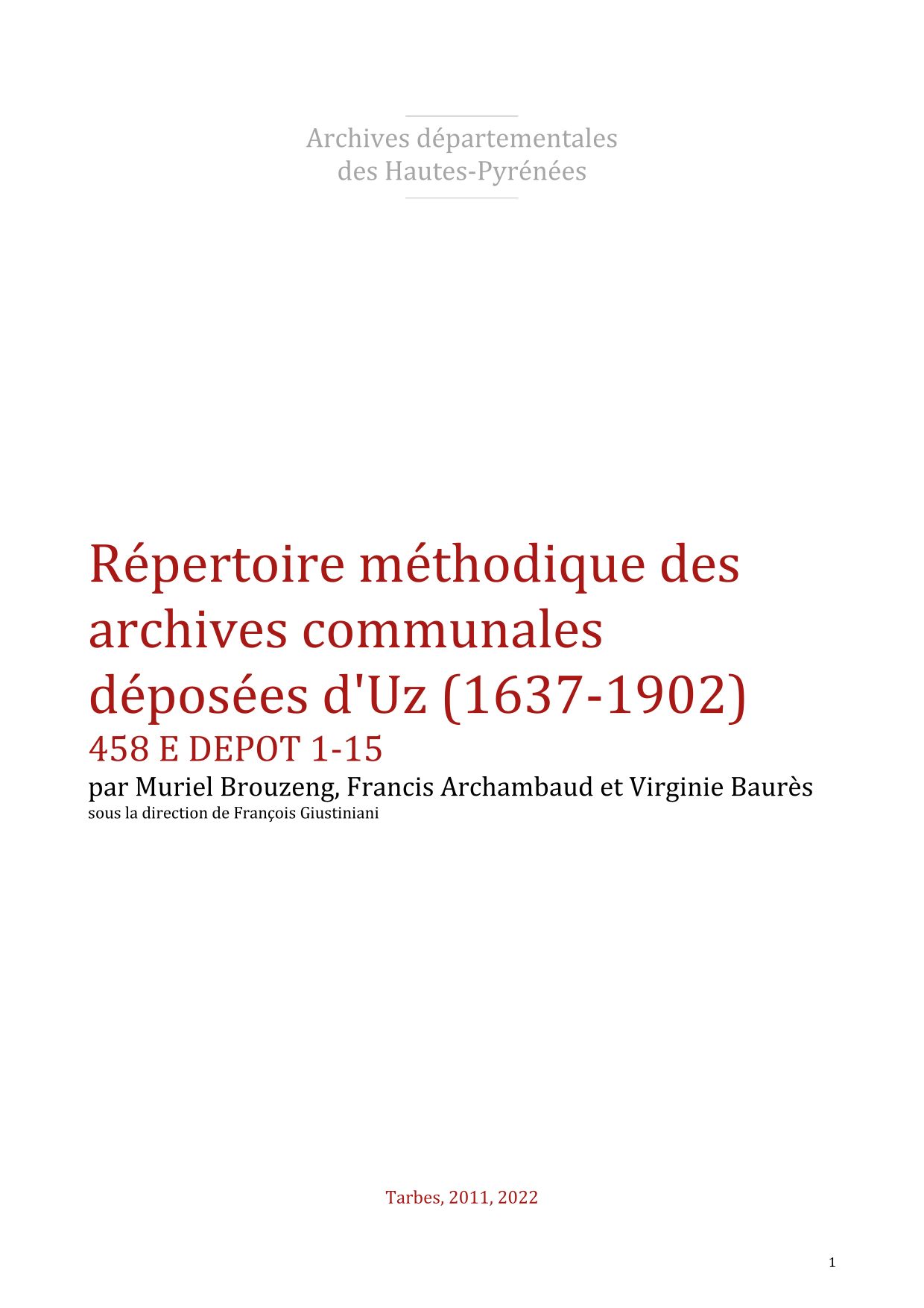 Uz (fin 18°s. Carte de Cassini).