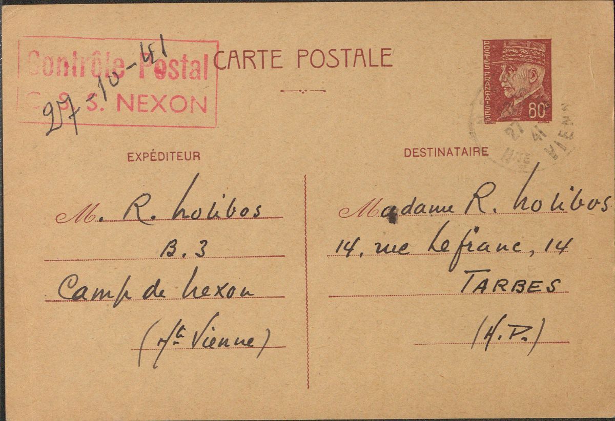 Seconde Guerre mondiale Lettres et carnets Carte postale de Raoul Nolibos envoyée à son épouse (1941), 203 J 2. Paul Mathou Raoul Nolibos