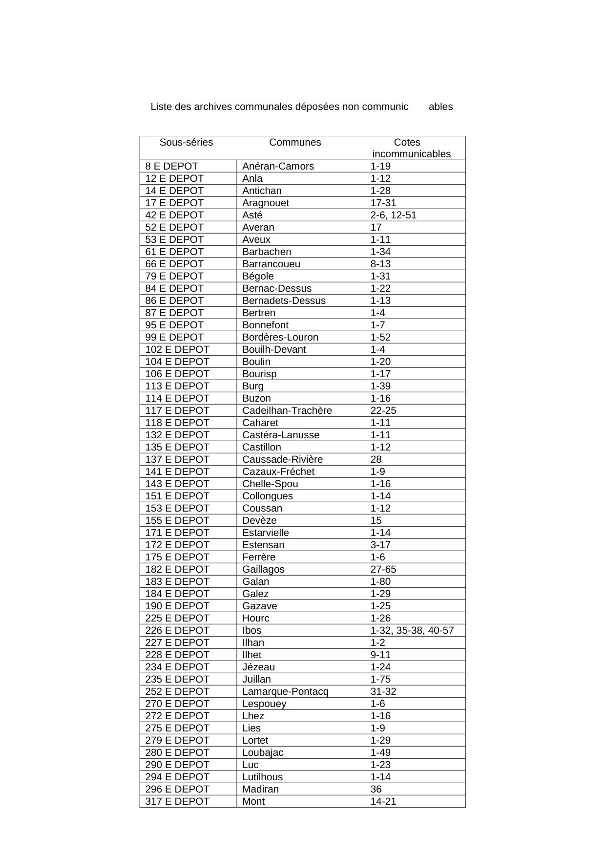Pour ces mêmes raisons, les archives déposées par plusieurs communes et conservées en série E DEPOT sont également incommunicables le temps des travaux.
