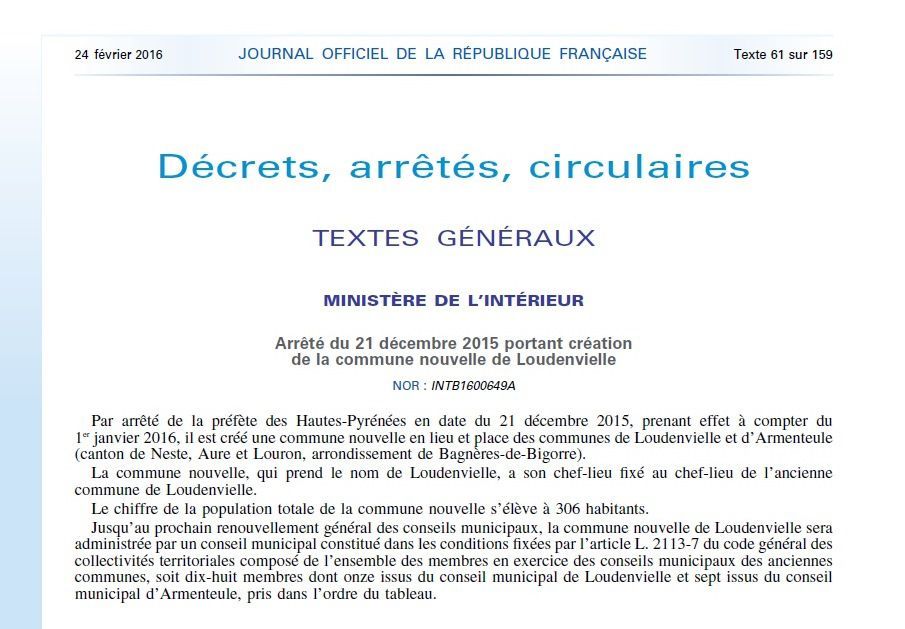 Le 1er janvier 2016, quatre communes des Hautes-Pyrénées ont fusionné pour n’en former plus que deux : Armenteule a été rattaché à Loudenvielle et Gavarnie et Gèdre forment la commune nouvelle de Gavarnie-Gèdre.