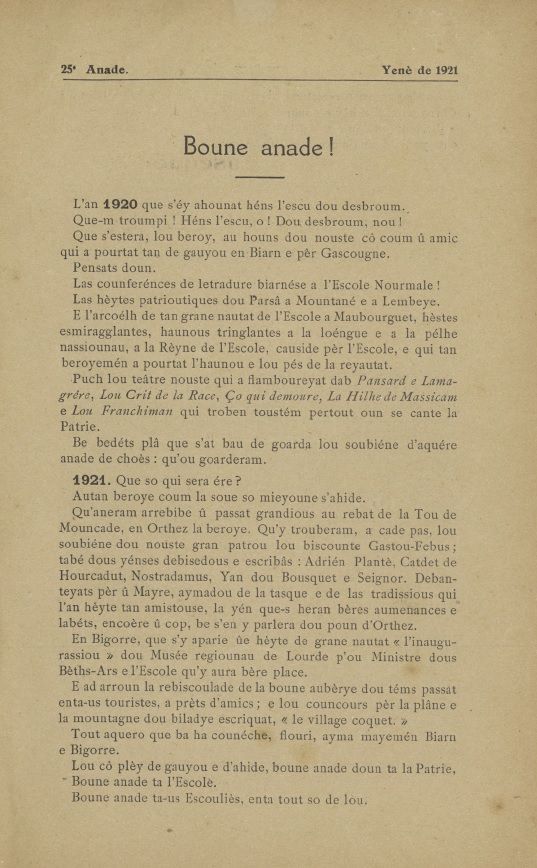 Il restera le beau [, le joli,] au fond de nos cœurs comme un ami qui a porté tant de joie en Béarn et [par] dans toute la Gascogne. »