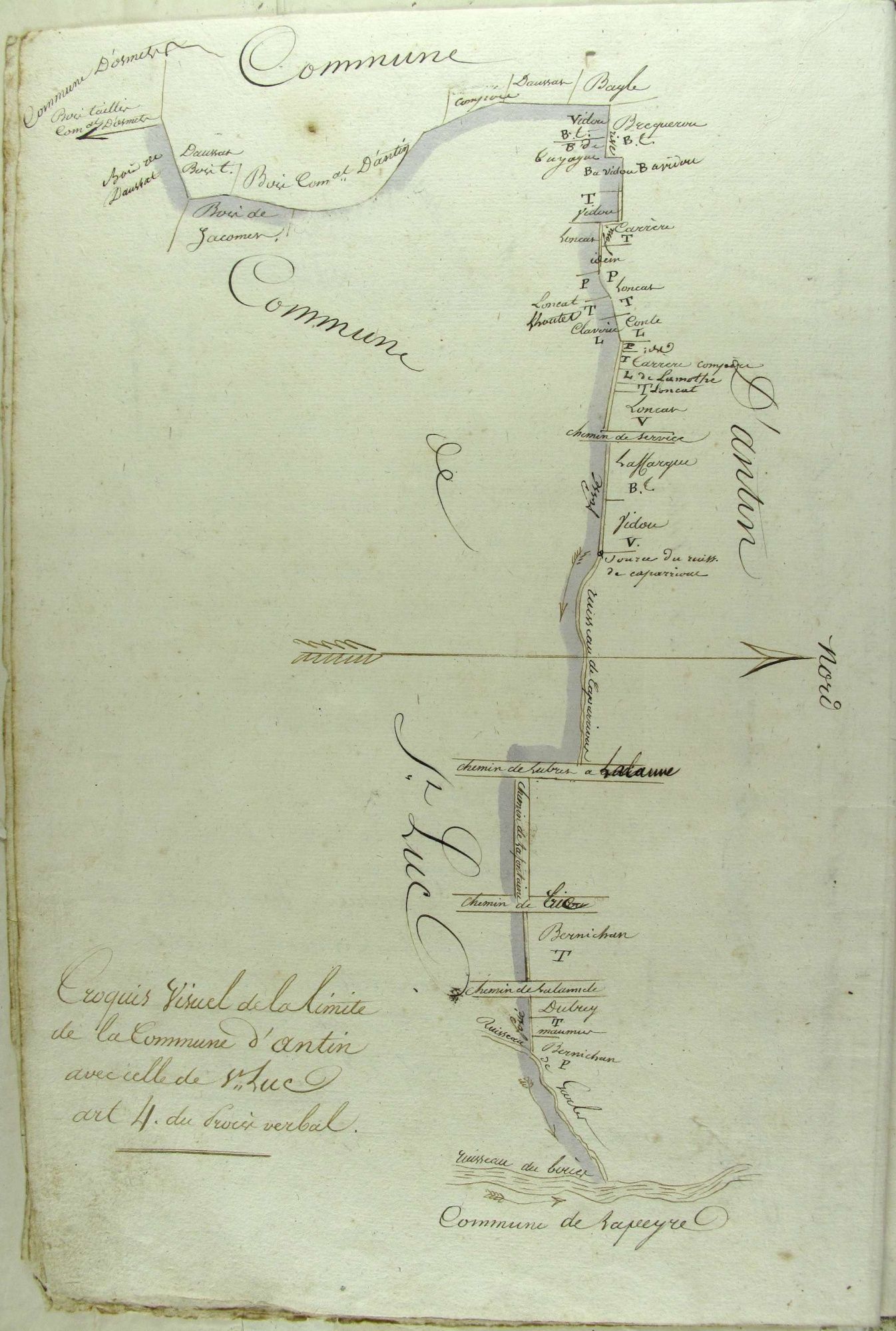 La loi du 15 septembre 1807 prescrit l’établissement pour chaque commune d’un cadastre parcellaire, appelé « cadastre napoléonien ». Pour ce faire, sont en premier lieu délimités les territoires des communes. Le procès-verbal de délimitation accompagné du procès-verbal de division de la commune en sections du cadastre indique les limites avec les communes voisines. Il est établi entre les maires des communes limitrophes. Tout comme les états de sections, les matrices et les plans, ces documents étaient établis en deux exemplaires conservés l’un à la direction des services fiscaux, l’autre dans les communes. Encore aujourd’hui, ce document reste fondamental en matière de définition des limites des communes.