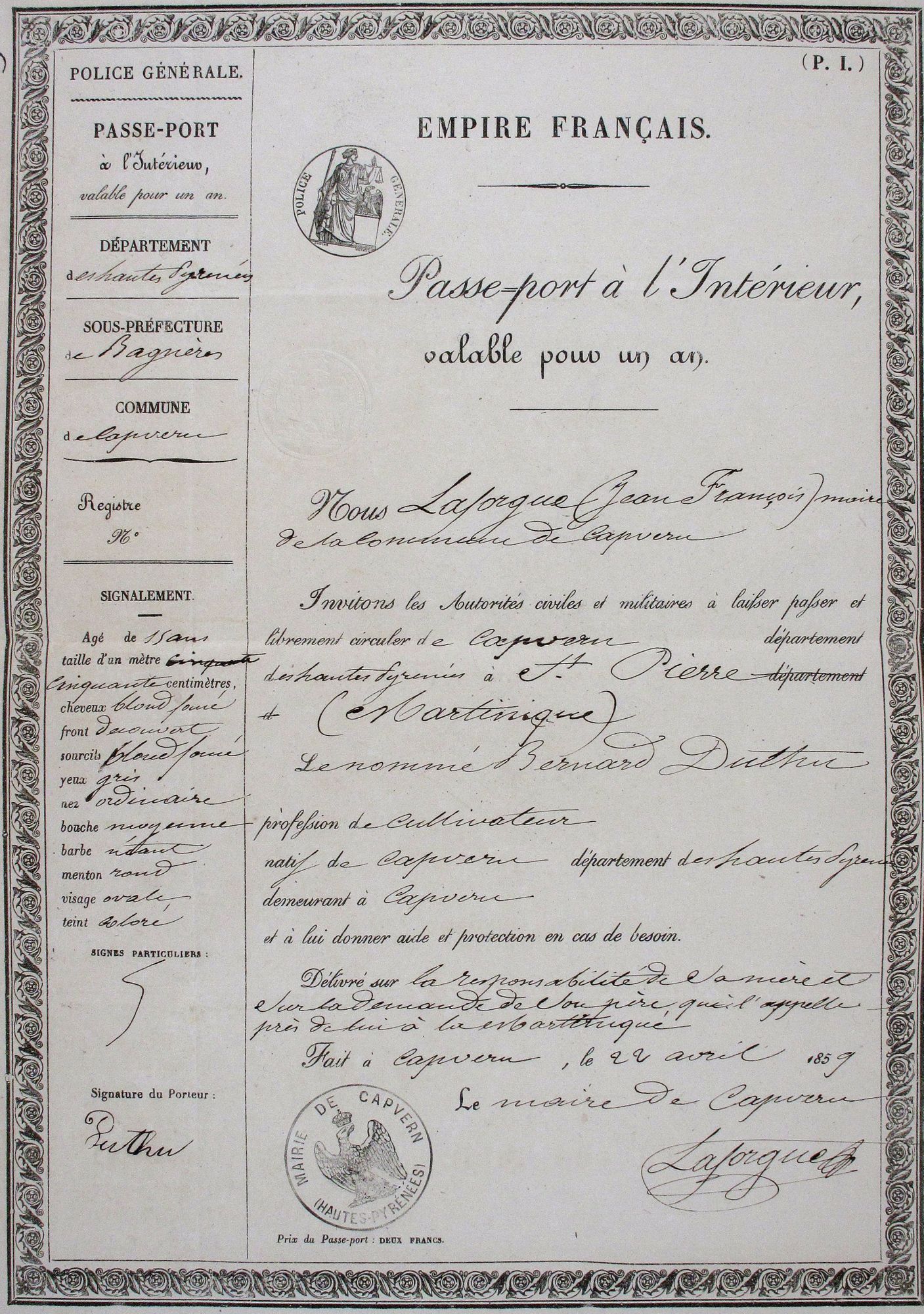 Le premier d’entre eux est le passeport. D’un usage très ancien, il avait pour objectif, sous l’Ancien Régime, d’assurer à son détenteur, aide et protection dans ses déplacements.